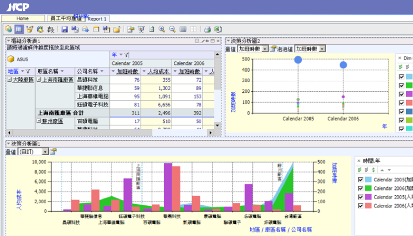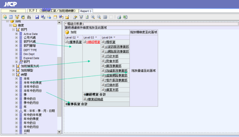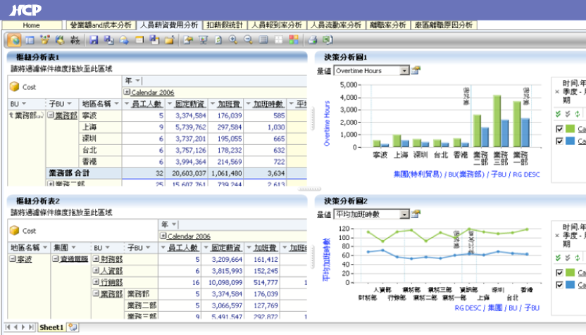 The system includes at least 25 dimensions and 20 measures. Dimensions cover employee data, plant information, payroll items, and overtime data, while measures include working hours, costs, overtime pay, and salary amounts. Through flexible drag-and-drop operations, HR teams can generate analytical reports independently without relying on IT staff to write code.