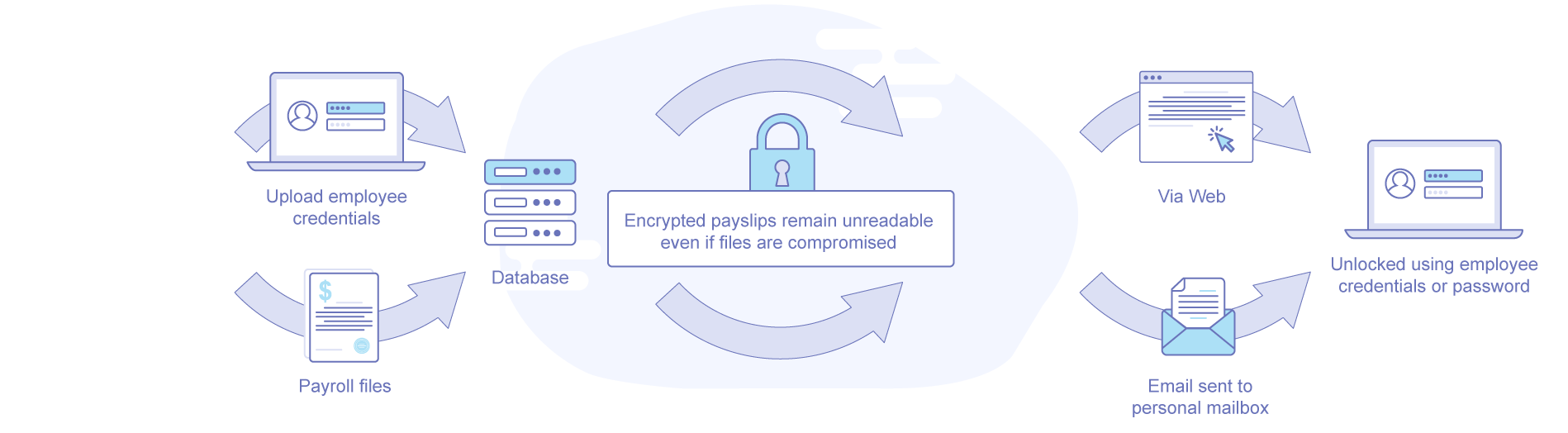 No restrictions on HR platforms—encrypted payslips can be integrated and distributed from any HR system. Payroll data is exported and encrypted within the HR system and decrypted only on the employee’s device, ensuring secure transmission with no risk of leakage. Employees can use passwords or digital certificates (Citizen Digital Certificate, Financial Certificate) for encryption and decryption, providing enhanced protection for payroll information.
